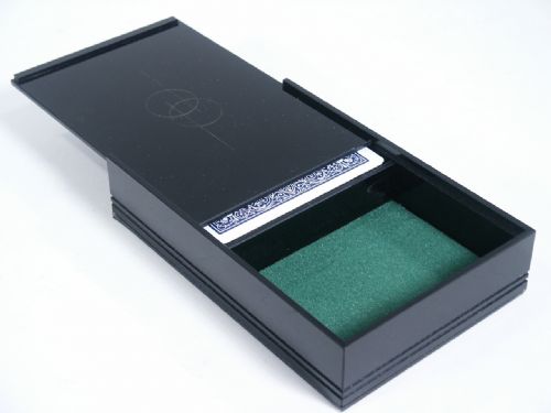 For this unit you will need to supply your deck of cards along with a shim card to match. When the time for the box to close preventing the selected card to be dealt in the lid moves closed with an eerie sound and closes nearly all the way leaving only a 1/2" opening. Includes instructions. Condition very fine.