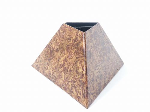 Made of stiff board and well made at that for showing opened and simply empty then folded together as you see in the picture to produce silks, spring flowers, rubber production items, etc. (not included). This is a deceptive principle that conceals a sizable load. From bottom to top edge measures 4" and the longest bottom edge measures 7 1/4" to give an idea of size. Includes illustrated instructions. Condition very fine.