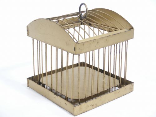 To begin, you could not have someone make this for less than $250 to $300. Made of metal and you see the preproduction photo and the photo as the audience sees the cage. It is possible a tiny bird could be produced with this as the top bars will swing open to place one within. Condition very good.