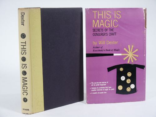 | Secrets Of The Conjurer's Craft. The Citadel Press, New York. 1958, cloth bound, 204 pages, illustrated. Contents: The Secret From The Tomb, The Cups And Balls, Oracles And Robots, It's All Done With Mirrors, The Lady Vanishes, The Trick That Never Was, Up In The Middle Of The Air, Sawing A Woman In Half, The Legend Of Houdini, Marked Cards, The Four Aces Of Card Magic, Think Of A Number, The Sealed Mystery, Is It Second Sight? Pictured is the partial dust jacket that was found tucked inside cover. Condition foxing to end papers and flyleaves, inscription front flyleaf, otherwise very fine. | |