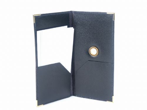 From 1983 and made of leather with brass corner pieces. Two of the sheets of paper are shown and may be initialed by a spectator. These sheets are placed inside the wallet, one on each side. A bank note is borrowed and it too can be signed by a spectator and is then placed inside the wallet sandwiched between the two sheets of paper. When the wallet is closed the paper is seen through the holes which have grommets on each side. A cigarette that is lit is pushed slowly through the wallet holes and yet once this has been done the wallet is opened and the bank note is unharmed although each paper has a hole burned through its center!