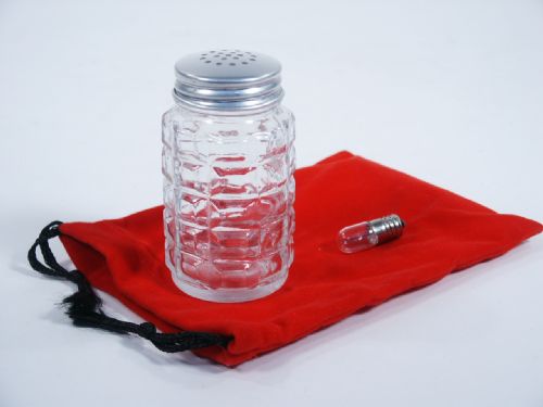 A light bulb is placed in a salt shaker and handed to the magi. The bulb begins to shine brightly. All can be inspected.