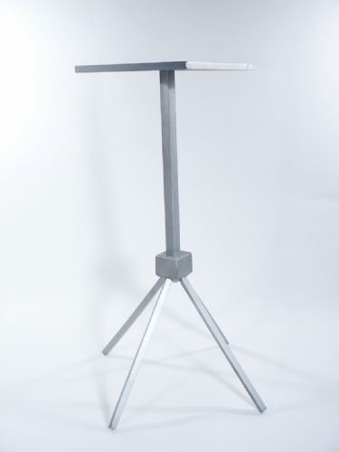 This lightweight table made of wood stands 32" high with a top measuring 12" square and disassembles into the top, upright post and four legs making for easy transport as sometimes you need a small side table for performance. Condition very fine.