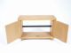 This solid wood cabinet measures 8 1/4" wide x 5 1/4" high x 3 1/8" deep having two doors at front and an open back with rod that runs horizontal through the cabinet. In a mysterious manner, rings that may be borrowed may penetrate onto the rod while ends are seen at the outside of cabinet. Rod is special in the way it may be slightly moved aside for penetration. Condition fine.