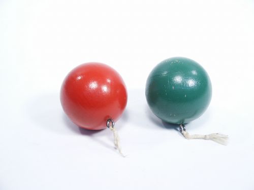 | Copyright 1942 by C. James McLemore, Indianapolis, Indiana. Performer ties a string, between the top of two chairs, or other suitable objects, and about 21 inches apart and about 3 feet (but any distance high is ok) from the floor, leaving the end of one string draped over the chair and down to the floor. Across this chair having the loose string, the performer lays his coat, touching, or over, the string. The performer then ties to the string two balls, one being red and the other green, leaving them hanging from this single cross string. Balls are hanging about a foot downward and about 3 inches apart. Performer then sits on the floor behind the balls, at first close enough to touch them, and carefully sitting upon the loose end of the string which is laying on the floor under him. At his command, first the red ball will swing like a semaphore or pendulum and then at the performer's command the red ball stops and the green ball swings. Then, although performer lays down on the floor away from the balls, at his command the green ball stops and the red ball swings, and this continues alternately as long as he desires, and the audience can not possible see any control performer exercises over the swinging of the balls, it is positively undetectable. At the conclusion of his patter the performer arises, walks over and takes the balls off the string and the string and coat off the chair and destroys the "evidence". You will need to add string to complete as these are the special size original balls with eyelets and complete routine. Includes 6 pages of instructions with illustration. Condition very fine. |