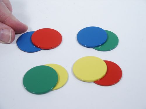 A revolutional close up trick in which 4 different colored chips visually penetrate one by one, through the bottom of a clear glass and drop onto the table. Chips are beautifully well made in metal and finished for performance standards. Use your own glass and close up pad. Includes 2 pages of illustrated instructions. Condition like new, unused.