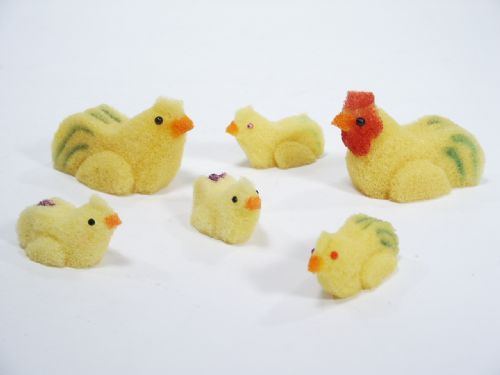 Includes Rooster, Chicken and 4 Baby Chicks for Multiplying routine at your favorite Chicken Restaurant or wherever. Includes instructions. Condition as new.