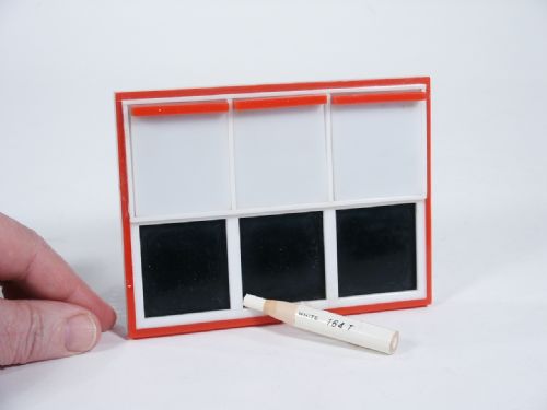 Measures 5" x 3 3/4" and 5/16" thick, made in white and red plex and operating in the usual way of the classic mental epic. Three panels fit in sections to conceal predictions. Includes instructions. Condition fine.