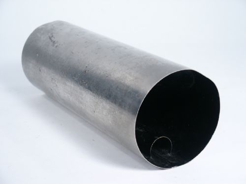 This metal tube is 9" in length with a diameter of 3 1/4". One end that is open has a Foo Can partition which will hold liquid poured in and then tube turned upside down. There is a small channel with which to place a magic wand (not included) through showing no obstruction. The other end you will find has a small partition with a cork which will hold a dry load of your choosing. Condition used with pitting to metal but still good for use.