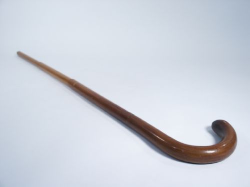 The collapsed cane measures 18" and the extended length is 35". The two extension pieces are of tapered hollow wood and the purpose was likely a production out of a smaller container. Condition light finish absence and there may have been a tip at the end at one time, otherwise very good and scarce.