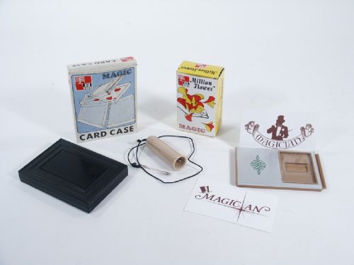 Includes Card Case, Million Flower, Cigarette Pull and Tricky Business from 1987 which enables a blank card to be placed within and initialed by spectator and when it is removed it is a printed business card! This does not include the plastic holding case it originally came with and only 1 each of the printed cards and a blank. This is a really clever item you could use to print your cards. Includes illustrated instructions. Condition items generally good.