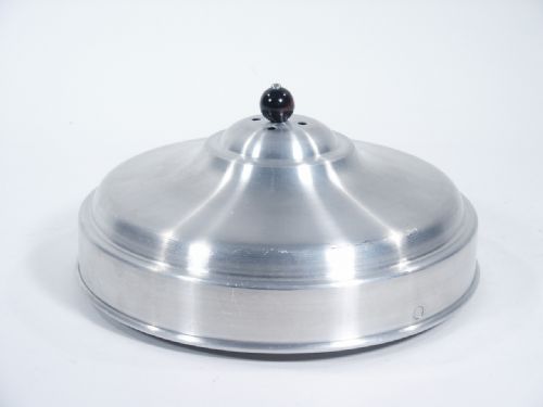 Made of spun metal 9" in diameter and will hold a deceit size load for production from empty pan prior to covering. Includes instructions. Condition fine.