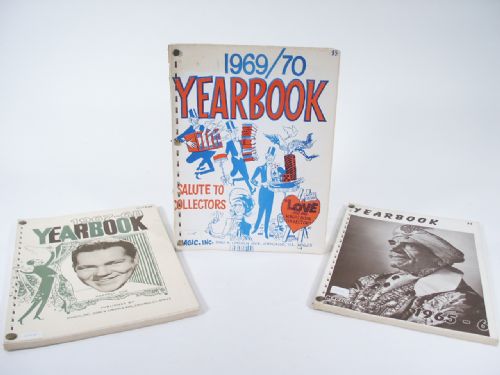 Magic Inc. Year Book 1967/68, 1968, soft bound, 112 pages with Index, many photos and some illustrations. This one with Karrell Fox Profile. Condition private collection identifier label, foxing top page edges, fine. Magic Inc. Year Book 1969/70, 1970, soft bound, 144 numbered paged plus Index, many photos and illustrations. This one with Salute to Our Collectors. Condition private collection identifier label, foxing top page edges, some soil to covers, fine. | |