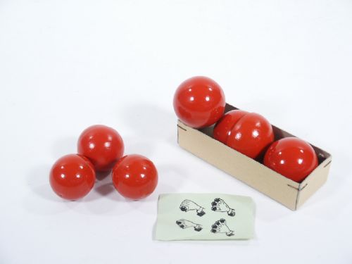 Both are sets of 3 solid wood balls and 1 shell, one set is 35 mm or 1 3/8" and the other 29 mm or 1 1/8". Both in very fine condition and are stamped Germany inside the wood shell.