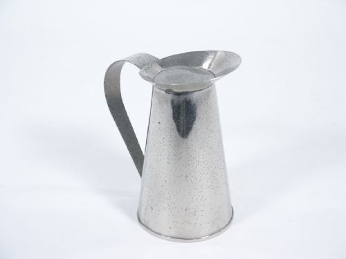 Pitcher of metal stands 4 3/4" high and will hold a good amount of liquid that you have control over how much pours out at a time. This is similar to the Merv Taylor issue in the United States. Condition fine pitting to finish overall could stand polish, otherwise very good.
