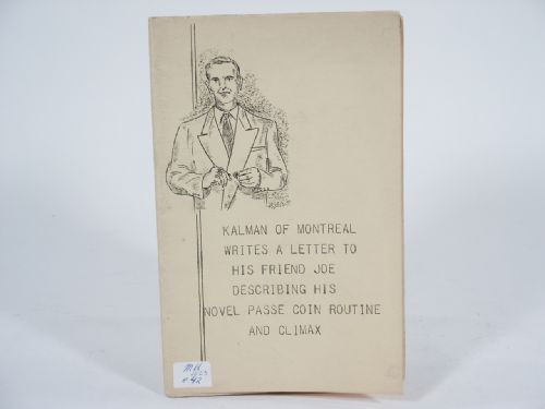 Kalman Of Montreal writes a letter to his friend Joe describing his Novel Passe Coin Routine And Climax. Published by William Kalman, Montreal, Quebec. Foreward by Sid Lorraine. 1947, wraps, 8 numbered pages plus additional page of illustrations, illustrated. Condition private collection identifier number, very fine.