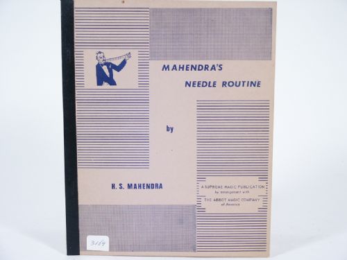 Mahendra's Needle Routine - Presentation Complete with Regular and Comedy Patter, by H.S. Mahendra. A Supreme Magic Publication by arrangement with The Abbott Magic Company. 12 pages, soft bound, illustrated. Condition private collection identifier label, fine.