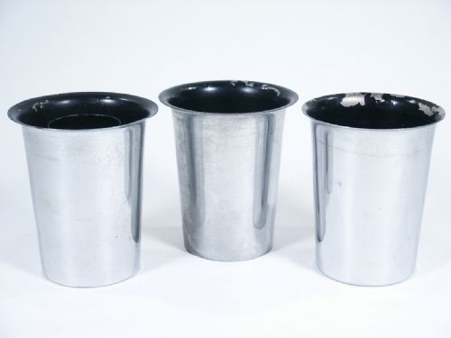 High quality made in metal, standing 5" high. After demonstrating the empty condition of the cups a magical production of water is shown. The fit on the cups is as it should be and a lot of work went into the manufacture of these. Condition light paint absence of interior, otherwise very fine.