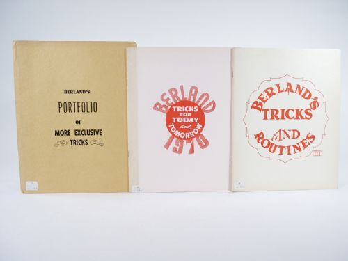 Berland's Portfolio of More Exclusive Tricks, soft bound, illustrated. Contents: Blockbuster Opening, Routine For The Coin Through Borrowed Handkerchief, Marked Card In Purse, Jumbo Stabbed Card, Cup and Ball Magnetic, Impromptu Method For a Vanish of a Shot Glass Containing Liquid, The Bill In Lemon Trick, Cutting A Borrowed Bill in Half, Improved Torn and Restored Card, Haunted Cigarette Pack, Tear A Bill, Thimble Jumbo, Ultra Prediction, Malini Outdone. Condition private collection identifier number, very fine. |