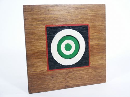 What you have is a mahogany wood board 8 1/2" square that is plain on one side and on the other a painted image. By holding the board in different directions you will be able to bring about the four different images pictured. Condition fine.
