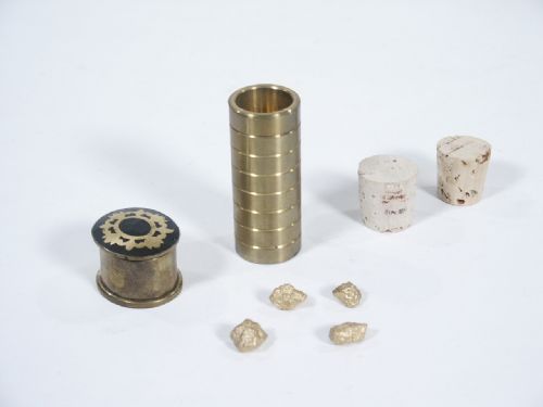 In addition to the items pictured you receive two vials with black glitter and gold glitter for use in the routine. With patter along the lines of making gold and silver out of chemicals and the like you will be able to make a magical demonstration that will have them believing you are a true Alchemist. Quality made in Brass by Viking Haenchen and includes 1 pages of instructions. Condition very fine.