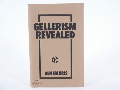 | Gellerism Revealed - The Psychology and Methodology Behind The Geller Effect, by Ben Harris. Publisher Micky Hades International. 1985, soft bound, 95 pages including Bibliography, photo illustrations throughout. Contents: Dedication, Acknowledgements, Introduction, Who Is Uri Geller?, The Psychology Behind The Key Bend, Psychology Behind The Watch Trick, The Physical Methods, Subtleties, The Cutlery Bend, Watch Wizardry, Conclusion, Bibliography. Condition private collection identifier number, fine. | |