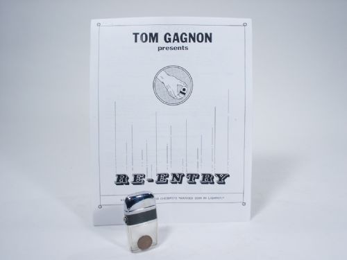 A coin that is marked ends up inside a clear reservoir lighter and the mark is verified! The lighter is then turned over and the coin falls out the bottom into the spectator’s hand followed by the dropping of the lighter into the spectator’s hand as well! This includes Chesbro instructions from 1979 and 1983 Publication by Tom Gagnon Entitled Re-Entry, 8 pages along with 22 Illustrations. Condition very fine.