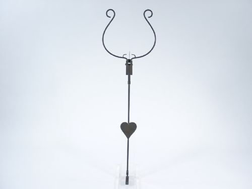 In Brass and made in two parts and sold by Conradi Horster to add to the performers table by mounting bottom solid lug to the underside of tabletop using your own brackets. The beautiful design is of a Lyre Harp for holding a balloon and a simple but elegant heart design on the upright which also functions to conceal the spring mechanism. The height overall is 21" and the width of the harp is 6 1/2". The condition of this Rare piece is amazing and it was well kept and highly thought of by the Collector whose previous ownership it had. You will not likely see one of these again. Condition very fine.