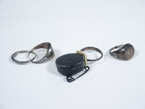 Showing a band style Silver ring and a signet style Silver ring they are brought near one another for a moment and magically they are shown linked inseparable! The instructions speak of an elastic pull but someone has replaced smartly with a Hallmarked P&L Sleeve Reel. Includes instructions. Condition fine.