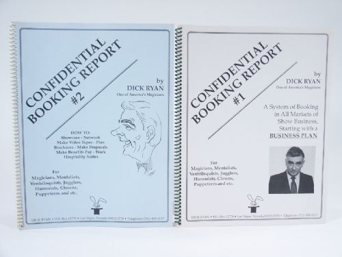 Confidential Booking Report #2 by Dick Ryan. How To Showcase - Network - Make Video Tapes - Plan - Brochures - Make Proposals - Make Benefits Pay - Work Hospitality Suites. For Magicians, Mentalists, Ventriloquists, Jugglers, Humorists, Clowns, Puppeteers and etc. 1990, spiral bound, 57 pages, photos, Inscription with Autograph. Condition very fine. | |