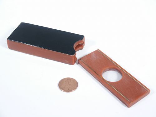 For use with a dime or a penny and made of brown plex same as Taytelbaum had used in his creations. This does not work like a regular coin slide where you have a plunger inside of the case but a different method is used. The slid itself has a clear round opening which allows the spectator to see completely through. With this you may have a coin taken from slide and vanished only to reappear as you have a double load built in. This is from one of Taytelbaums imitators. Condition very good.