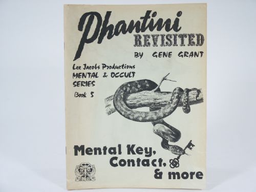 A Lee Jacobs Publication by Gene Grant. Lee Jacobs Productions Mental & Occult Series Book 5. Mental Key, Contact, & More. 1982, soft bound, 36 pages, illustrated. Foreword by Kenny Woodward Jr. Chapters on: Phantini's Mental Key, Phantini's Contact: A Two-Person Mental Routine, Illustrations. Condition 1" break to foredge of cover, otherwise good.