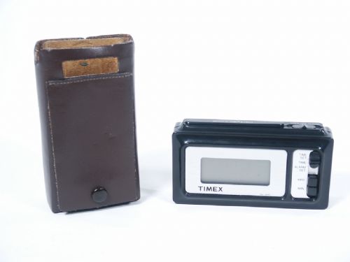 This was found in the original box with special leather case in unused condition. The effect is that the performer removes a small digital alarm from a leather case and hands it to a spectator for full examination. Spectator then inserts clock in to case and because of the case's design, the spectator is able to manipulate the controls. Because of a window in the case, the spectator can see that the time keeps changing in response to pressing the button. The cover is then closed so that a time may be selected randomly by the spectator. At this point performer asks to borrow spectator's wristwatch. The performer sets the watch to a particular time and hands it to another spectator. The first spectator removes the alarm from the case and reads the selected time. It matches that set on the wristwatch! Includes 8 pages of instructions. Condition very fine.