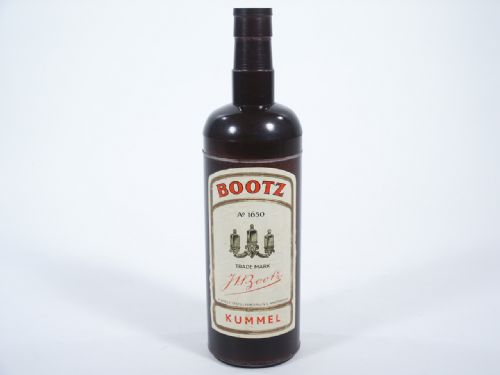 This well made bottle stands 10" high and you may first pour liquid in the regular way from it and then the neck and small section are removed turning bottle body upside down and placing neck on you will be able to pour a quantity of liquid from it in this condition! Some instructions are included to give idea of working. Condition very fine.