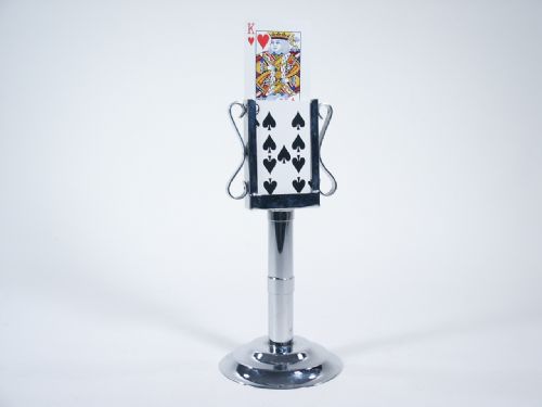 Circa 1950's by Abbott's. Standing 9 1/4" high this metal skeleton frame houlette will cause cards to rise one after another and at the completion of the effect the houlette and stand may be examined. The motive power for the rising of the cards is made so that it can be removed so that examination may take place.