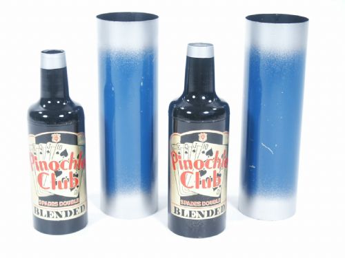 Bottle height is 6 1/4" high and as P&L Bottles go they are quality made with spun copper top and the smaller bottle has a reservoir for the finish of the effect with pouring liquid into a glass. Includes instructions. These are Hallmarked and in very fine condition with only a tiny paint absence at joints on the bottles, and tubes have some paint absence as usual.