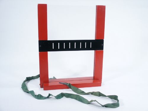 Made of wood and standing 15" high by 12" wide. The clear plex piece with matching slots, after being woven together with the horizontal black piece, it makes its escape from the ribbon. This is hard to find and as with Massey items it is a fooler. Includes instructions. Condition the clear plex will have to be buffed and rubbed out to remove scuffs due to age, otherwise fine.