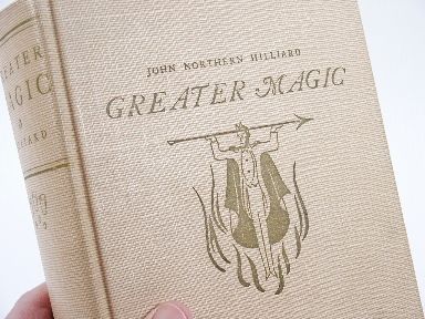 John Northern Hilliard edited by Carl Jones and Jean Hugard revised edition Ninth Impression pictorial cloth numbers 1006 pages with Index and having 1150 Illustrations by Harlan Tarbell. Carl Jones in 1942 wrote "I am indeed grateful to the more than 100 Magicians who aided me in accomplishing Hilliard's Dream of another Book bringing Magic up to date." Usually found in red cloth this edition in the beige cloth scarcely seen. Greater Magic is one of my all time favorites and I hope it will be yours too. Condition very fine. | |