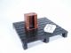 A slat style tray along with houlette and deck of cards make for a pretty amazing effect of selected cards rising one at a time followed by examination of all! What makes this even more incomprehensible is the fact that a handkerchief or silk is placed over the tray prior to the placement of the houlette disproving any notion of a connection between the tray and the houlette with cards. Includes cloth carry bags for tray and houlette along with cards and two pages of illustrated instructions with patter for the Val Evans' Rising Cards. Handkerchief or silk not supplied. Condition of all very fine. | |