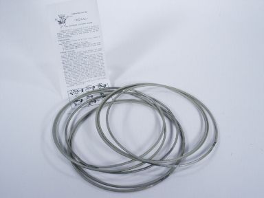 A set of 8 rings from the 1950's. Finish dulled through the years. Very thin in manufacture being under 3/16" stock. Condition good.