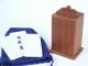 Before you now is an elusive well built piece of apparatus by Alan Warner. Likely if you have started a collection of Mr. Warner's fine effects you will not have the Spirit Cabinet. The effect begins with the magician raising the top of the cabinet showing the empty interior. Three white oblong plastic cards are shown to be blank and slipped into the cabinet through a slot in the top. A spectator is called upon to mentally select a playing card and the spirits of the cabinet are asked to write down the name of that card. Raising the top again the magician removes one of the cards to see if the spirits have successfully named the chosen playing card but the card is still blank. The spectator is asked to name the card so everyone may concentrate and perhaps link up with the spirits of the cabinet. The top is raised and another card removed and this time it has some writing upon it. Unfortunately it was a Chinese spirit that has written the chosen card in his own language! The spectator is now asked to concentrate on a color instead and with hopes that contact will be made with an English speaking spirit. The last plastic card removed from the cabinet is completely blank! Holding the cabinet in hand and displaying its empty condition the magician states "You must all be wondering if there are really any spirits in the cabinet but let me assure you that there is always at least one French spirit permanently in residence." The cabinet is closed and then raising the top once more it is revealed that a miniature bottle of French Liquer which completely takes up the space has now made an appearance! Finely made of wood including cards and carry bag and instructions. In very fine condition and definitely an early Warner item you must have. | |