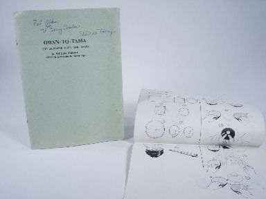 1972 Wraps with multi sheet illustrations insert. Numbers 9 pages of text and work is on the Japanese Cups and Balls. Inscribed and Autographed to Jerry Andrus by Shigeo Takagi. The late Jerry Andrus was known as a magician's magician. A rare individual possessed of many talents creating magical effects and optical illusions enjoyed around the world. This auction listing is from the personal effects of Mr. Andrus. | |