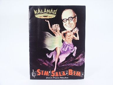 Kalanag in Sim Sala Bim with Gloria de Vos. Light creasing. The late Jerry Andrus was known as a magician's magician. A rare individual possessed of many talents creating magical effects and optical illusions enjoyed around the world. This auction listing is from the personal effects of Mr. Andrus. | |