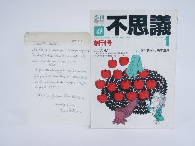 Japanese Periodical 1982 Vol 1 No 1 with Andrus article pages 28 to 37 and nice letter to Mr. Andrus from Shigeo Futagawa. The late Jerry Andrus was known as a magician's magician. A rare individual possessed of many talents creating magical effects and optical illusions enjoyed around the world. This auction listing is from the personal effects of Mr. Andrus. | |