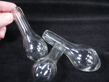 These due to use are nearly impossible to find and what you have are 3 with each almost 4" in length. The magician may take a flask and beat it against a hard surface followed by taking a hammer and rapping against it a few times. All attempts are without breakage. The flask is then placed in a transparent bag (not included) and at command will shatter to pieces! The carborundum crystals are absent and you will have to supply. Includes instructions. | |