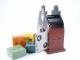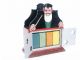 Built around the effect named Bloxo this cabinet contains four blocks of different colors that when placed vertically within and doors closed the blocks are in view through round openings in the doors. Both the front and rear side of the cabinet match with exception of the doors and the doors on one side are in Gold and on the other side are in Silver. This beautiful piece stands 12" high and base is 10" wide x 5 3/8" deep. Built of wood and well painted design of a Magician wielding a wand and a handle between the two Magician figures for effectively holding the cabinet. The doors front and rear are hinged to the cabinet and closure is by hook and peg fasteners. On the sides of the cabinet you will find two horizontal slots that would accommodate two long narrow blades (not supplied) which serve the purpose of holding all four blocks securely in place as the blocks also have matching slot openings. This entire unit is contained within a wood carry case. The effect is of the free selection of two of the color blocks followed by the placement of all four blocks within the cabinet and then securely held in place with the two long blades. With blades in full view extending beyond the side walls of cabinet the Magician is able to open the rear doors and remove the two selected blocks and after setting these aside the front doors are opened showing the two remaining blocks still firmly held in place by the blades. Circa 1930's and the only one this Collector has ever seen. Condition very fine and desirable. | |