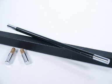 No paper shells here but you will have a wood wand with metal chrome tips along with a set of plug chrome tips with groove for string ensuring a nice fit into the paper shells when you make them for yourself or purchase already made. Wand has areas of paint absence otherwise fine.