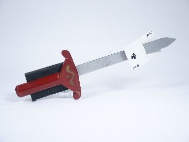 An original Massey creation for the impaling of a selected card on the dagger which is mechanical in operation. Light paint absence on hilt. Condition very good.
