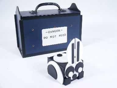 This is a real treasure whether or not you are an Anverdi Collector. A sliver of plex is absent at the back top of the body in the black plex section otherwise very fine and works well. This also includes a case the previous owner had made with lift up panels on either end to house this little guy. Condition very fine.