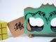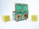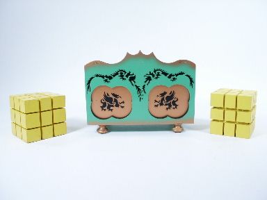 Showing a block of wood and banging it upon the table to show it solid the magician places it into a box that reminds one of a sucker die box. A sucker routine may be used of the block sliding from one side to the other and finally the two panels are removed and the spectators may see right through the box even with a wand (not supplied) being pushed through from one side to the other! If desired the block may be changed into a silk (not supplied). Circa 1970 and considered expensive when available at that time. Includes extra wood block for reproduction. Block size is 3 1/4". Includes instructions. Condition very fine. | |
